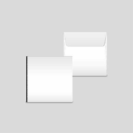 Material 120 g/m² Papier, elegante 50 mm Klappe mit abgerundeten Ecken und Haftklebestreifen.